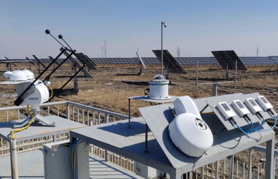 ▲國家光伏、儲能實證實驗平臺(大慶基地)布置氣象站,主要用于監(jiān)測當?shù)剌椪?、溫度、光譜紫外、風速風向等氣象數(shù)據(jù)。