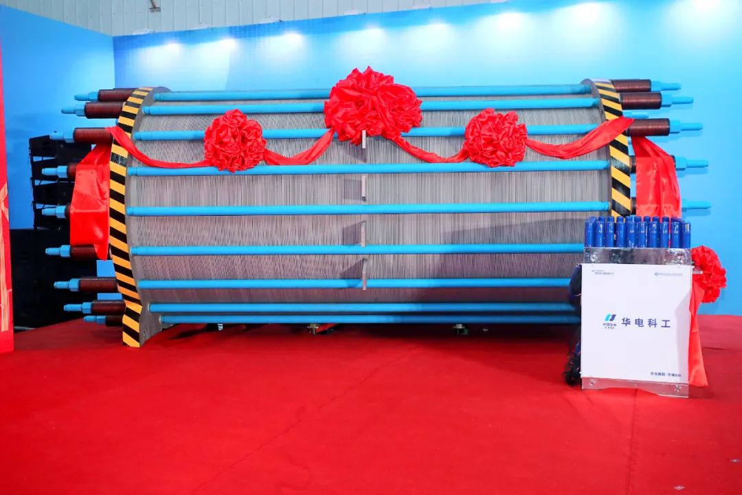 1月3日,由中國華電所屬中國華電科工集團有限公司自主研發(fā)的3300標方堿性電解槽及與中國科學院聯(lián)合開發(fā)的500標方PEM電解槽正式下線、2.5兆瓦PEM電解槽實證平臺投用,標志我國可再生能源電解水制氫裝備實現(xiàn)新突破,對加快構(gòu)建新型能源體系、實現(xiàn)“雙碳”目標具有重要意義。中國工程院院士彭蘇萍,加拿大工程院院士深圳技術大學未來技術學院院長劉清俠,天津市北辰區(qū)委書記倪斌,區(qū)委副書記、區(qū)長徐暉,區(qū)委副書記閆峰,副區(qū)長、開發(fā)區(qū)黨工委書記(兼)李維東,集團公司戰(zhàn)略規(guī)劃部總監(jiān)吳韶華、科技信息部副主任張宇龍,公司黨委書記、董事長彭剛平,黨委委員、副總經(jīng)理、總工程師李建標出席活動。