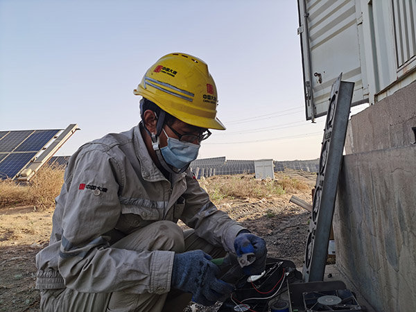 6月是光伏發(fā)電的高峰期,但環(huán)境溫度高、地域風沙大,導致現(xiàn)場逆變器室積塵嚴重,設備散熱效果不佳,部分散熱風扇受當?shù)仫L沙影響,無法正常工作,逆變器室因溫升限負荷報警,一定程度上制約了光伏板正常發(fā)電。“難題”擺在眼前,卻難不倒這群大漠電站的年輕人,為不影響峰值輻照的發(fā)電量,他們搶在太陽升起前便開始動身,備好備件、持好工具,快速趕到現(xiàn)場,一頓“快查、快拆、快換”靈活操作,2小時完成了40多個堵塞風扇的更換工作。到太陽高照的時候,他們再次赴現(xiàn)地檢查和處理低效發(fā)電組串,解決處理限制發(fā)電量的突發(fā)異常。一次次地現(xiàn)場排查、問題處理促進了發(fā)電量穩(wěn)步提升。