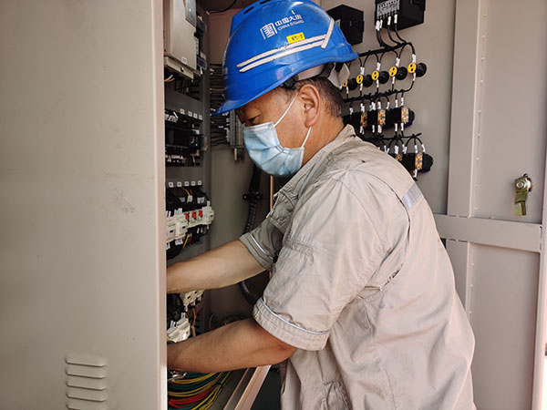 工作人員測(cè)量配電箱內(nèi)接地線的泄露電流