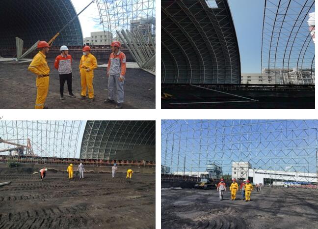 網(wǎng)架主體結(jié)構(gòu)安裝完工后,技術(shù)支持部協(xié)調(diào)施工單位及時(shí)平整、清理場地,發(fā)電部人員認(rèn)真履行檢查驗(yàn)收程序,雙方順利完成交接手續(xù),使干煤棚西側(cè)區(qū)域具備存煤條件。