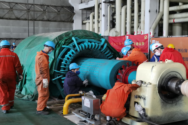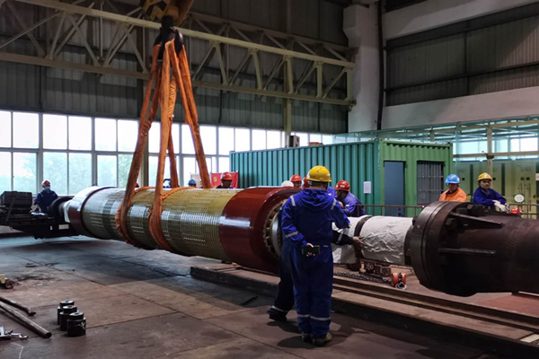 下午14時(shí)10分,隨著起重指揮人員的一聲哨響,發(fā)電機(jī)抽轉(zhuǎn)子工作正式開始,抽出期間,各專業(yè)人員分工有序,密切配合,時(shí)刻注意轉(zhuǎn)子與定子的間隙,及時(shí)調(diào)整轉(zhuǎn)子的移出量和中心位置,每一步都做到精益求精。整個(gè)抽出過程中,公司副總經(jīng)理張旭耀攜各部門負(fù)責(zé)人、專工現(xiàn)場(chǎng)監(jiān)督、指導(dǎo),隨時(shí)協(xié)調(diào)工作中可能出現(xiàn)的問題,為抽轉(zhuǎn)子作業(yè)的順利進(jìn)行,提供了可靠保障。