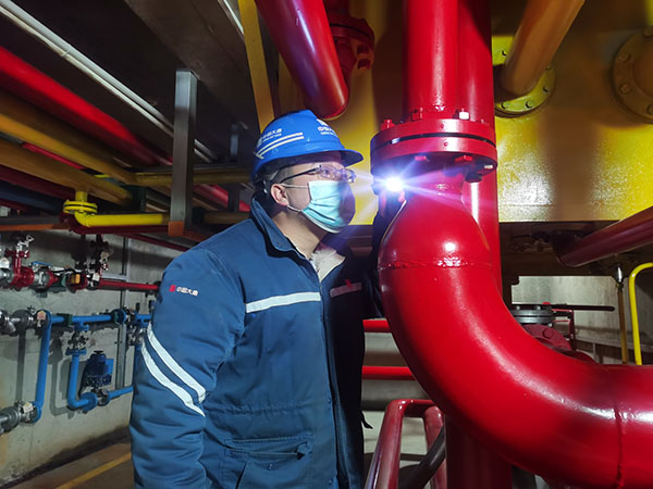 陳東汛在生產(chǎn)現(xiàn)場檢查設(shè)備設(shè)施