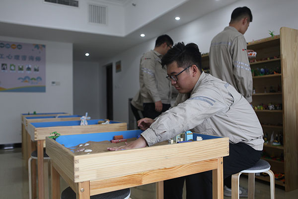 職工是企業(yè)之本,為促進(jìn)新職工之間的人際互動(dòng),普及心理健康知識(shí)水平,增強(qiáng)職工心理健康防護(hù)能力,激發(fā)職工工作的積極性、主動(dòng)性,該公司工會(huì)組織開展了沙盤游戲活動(dòng)。在工作人員介紹了沙盤游戲的相關(guān)知識(shí)和規(guī)則后,活動(dòng)正式開始。通過非語言的溝通方式,新職工們構(gòu)造著自我的內(nèi)心世界,有的是回味校園時(shí)光的美好畫面;有的是構(gòu)想未來的自由悠閑生活畫面;還有的是回歸現(xiàn)實(shí),踏實(shí)學(xué)習(xí)兢兢業(yè)業(yè)工作的畫面.......。短短的兩個(gè)小時(shí),通過繪制沙盤,體會(huì)到了凝聚與溫暖的力量;通過分享傾訴,訴說出了內(nèi)心的真實(shí)感受;通過溝通討論,相互汲取智慧。沙盤游戲還教會(huì)了大家如何在平常生活中如何緩解自身心理壓力,培養(yǎng)良好的生活習(xí)慣,進(jìn)一步增強(qiáng)了團(tuán)隊(duì)的凝聚力和向心力。