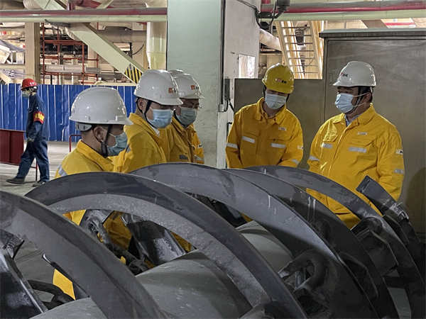 在鍋爐、汽輪機等檢修現(xiàn)場,薛總與各項目負責人、檢修人員進行深入交流,了解檢修項目的施工進度、節(jié)點完成情況、現(xiàn)場安全措施執(zhí)行情況等,詳細了解現(xiàn)場施工重點、難點問題。他要求各項目負責人要充分發(fā)揮黨支部、黨員先鋒隊、黨員示范區(qū)的引領(lǐng)作用,在保證安全的前提下,克服疫情帶來的不利影響,嚴格按照公司的節(jié)點計劃,保質(zhì)保量完成本次檢修工作;要求做好設(shè)備解體發(fā)現(xiàn)問題的分析和研究,制定出有針對性的措施,保證設(shè)備長治久安;對設(shè)備管理專業(yè)人員發(fā)揮工匠精神和主人翁精神,自己制造專用工具、自己發(fā)揮技術(shù)經(jīng)驗、減少外委修理、降低檢修費用的做法給予肯定,要求做好這種精神的傳承和技術(shù)的傳幫帶。