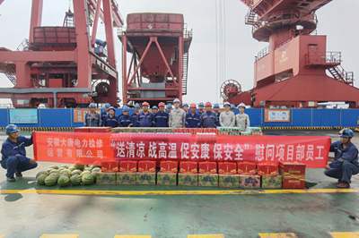 中國電力網(wǎng)訊 清涼度盛夏,安康伴我行。7月28日,安徽大唐電力檢修運營有限公司工會負責(zé)人赴當(dāng)涂碼頭項目部開展“送清涼 戰(zhàn)高溫 保安全”慰問活動,為奮戰(zhàn)在高溫一線的項目部員工送去防暑降溫物品,傳遞組織的關(guān)心關(guān)愛。
