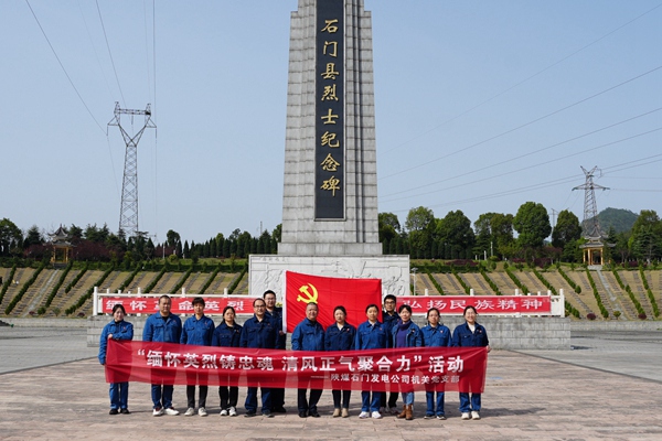 中國電力網(wǎng)訊 (通訊員:盧雅麗)清明時節(jié)寄哀思,豐碑永駐鑄忠魂。4月1日,陜煤石門發(fā)電公司機(jī)關(guān)黨支部組織全體黨員赴石門縣烈士陵園開展“緬懷英烈鑄忠魂 清風(fēng)正氣聚合力”清明祭英烈活動,引導(dǎo)全體黨員銘記歷史,傳承紅色基因,凝聚奮進(jìn)力量。