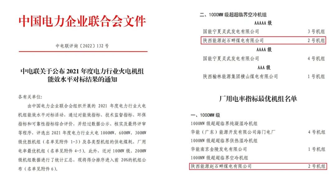 中國電力網(wǎng)訊 6月29日,從中電聯(lián)傳來喜訊,趙石畔煤電公司2號機(jī)組榮獲2021年度電力行業(yè)1000MW級超超臨界空冷機(jī)組指標(biāo)對標(biāo)“AAAAA級優(yōu)勝機(jī)組”及“廠用電率指標(biāo)最優(yōu)機(jī)組”。