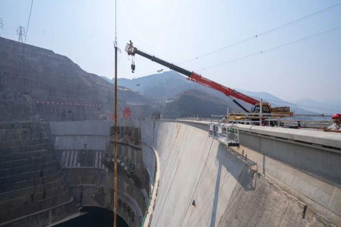 “吊裝這根36.74米芯樣的時候,我們提前跟蹤監(jiān)測了大壩區(qū)域的天氣、風(fēng)速,挑選最合適的吊裝時機,還選了技術(shù)最好的纜機操作手。”據(jù)裴磊回憶,混凝土芯樣吊裝那天,各方參建單位負責(zé)人守候在大壩現(xiàn)場,所有人的目光都集中在這根世界最長混凝土芯樣上。