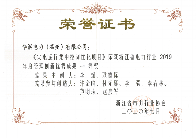 中國電力網(wǎng)訊 近日,由浙江省電力行業(yè)協(xié)會主辦的2019年度管理創(chuàng)新優(yōu)秀成果評審結果揭曉,華潤溫州電廠《火電運行集中控制優(yōu)化項目》從200余項創(chuàng)新成果中脫穎而出,榮膺一等獎。