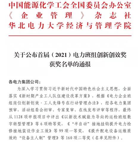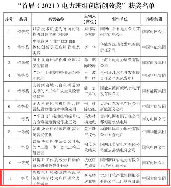 中國電力網(wǎng)訊 日前,由大唐環(huán)境特許經(jīng)營分公司申報的“燃煤電廠脫硫系統(tǒng)全流程智能控制技術(shù)應用研究及工程示范”項目在中國能源化學工會全國委員會舉辦的“首屆(2021)電力班組創(chuàng)新創(chuàng)效獎”評選活動中榮獲一等獎。