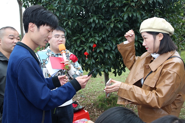青年聯(lián)誼活動(dòng)在熱情洋溢的氛圍中拉開(kāi)了序幕?;顒?dòng)內(nèi)容包括自我介紹、才藝展示、有獎(jiǎng)?chuàng)尨?、現(xiàn)場(chǎng)分組、游戲環(huán)節(jié)和玫瑰結(jié)緣牽手等。幾輪有獎(jiǎng)競(jìng)答,預(yù)熱了活動(dòng)現(xiàn)場(chǎng)。隨后,各單位隊(duì)長(zhǎng)開(kāi)始挑選隊(duì)員,進(jìn)行分組,分成了紅、藍(lán)、橙、紫4組。在主持人的帶動(dòng)下,每組以競(jìng)賽的方式完成“你演我猜”和“雙龍戲珠”等一系列豐富多彩的游戲環(huán)節(jié),青年男女之間進(jìn)行了一次次的互動(dòng)交流和團(tuán)隊(duì)協(xié)作,緩解了初次見(jiàn)面的緊張羞澀,也讓大家在歡聲笑語(yǔ)中,拉近距離、加深了解,將現(xiàn)場(chǎng)氣氛推向了一個(gè)又一個(gè)高潮。