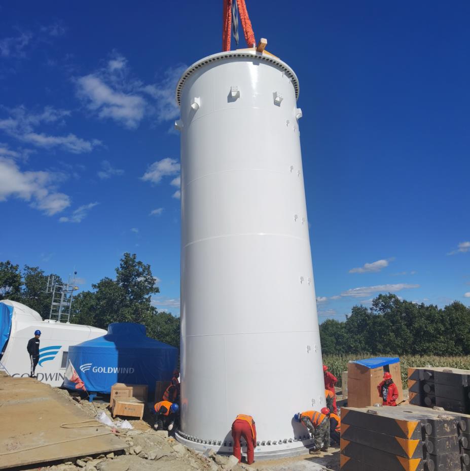 中國電力網訊 9月1日12時59分,隨著下端直徑4.86米,上端直徑4.85米,長12米,重87.3噸的底段風機塔筒順利固定就位,標志著大唐黑龍江發(fā)電有限公司黑河孫吳風電平價上網項目正式進入風機吊裝階段。