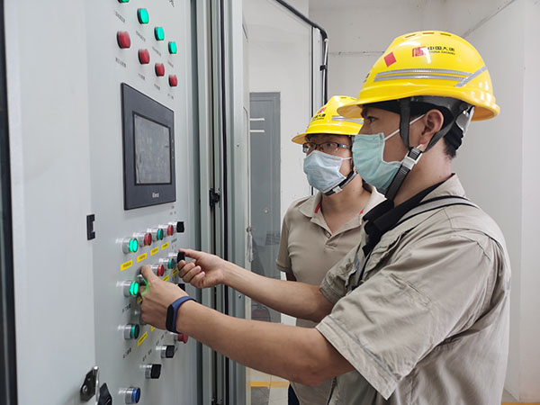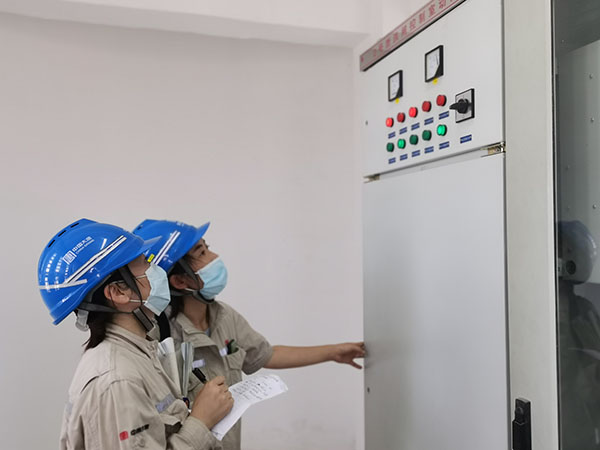 電氣團(tuán)員青年在檢查防汛設(shè)備電源