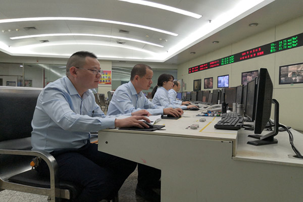 集控室,該公司運行人員在認(rèn)真監(jiān)盤、精心操作,加強(qiáng)對機(jī)組重要參數(shù)的運行監(jiān)控,確保機(jī)組安全、環(huán)保、經(jīng)濟(jì)運行。