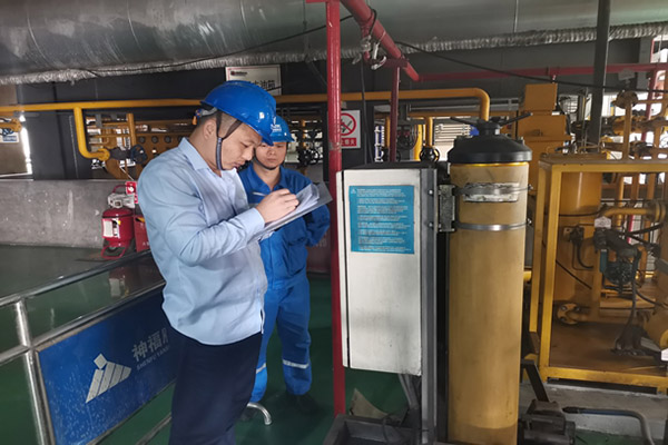 汽機(jī)零米層,該公司檢修部汽機(jī)點檢員正在對6號機(jī)組EH油濾油工作進(jìn)行過程監(jiān)督、檢查、簽證,保證油質(zhì)合格。