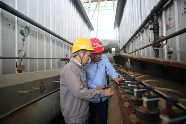 除塵布袋是袋式除塵器的心臟,布袋噴吹氣包可以吹除布袋上的灰塵,確保除塵系統(tǒng)的有效運(yùn)行。值班過程中,環(huán)保部運(yùn)行三班發(fā)現(xiàn)2號(hào)爐氣包噴吹電磁閥卡澀漏氣,脫硝專工吳文武和該班班長(zhǎng)龍智軍立即趕赴現(xiàn)場(chǎng),他們通過“望、聞、切”等方式,觀察現(xiàn)場(chǎng)設(shè)備運(yùn)行情況、聽取閥門漏氣情況、用鐵錘敲擊管道等,仔細(xì)檢查現(xiàn)場(chǎng)噴吹氣包運(yùn)行情況,確保布袋壓差正常和除塵系統(tǒng)正常運(yùn)行。