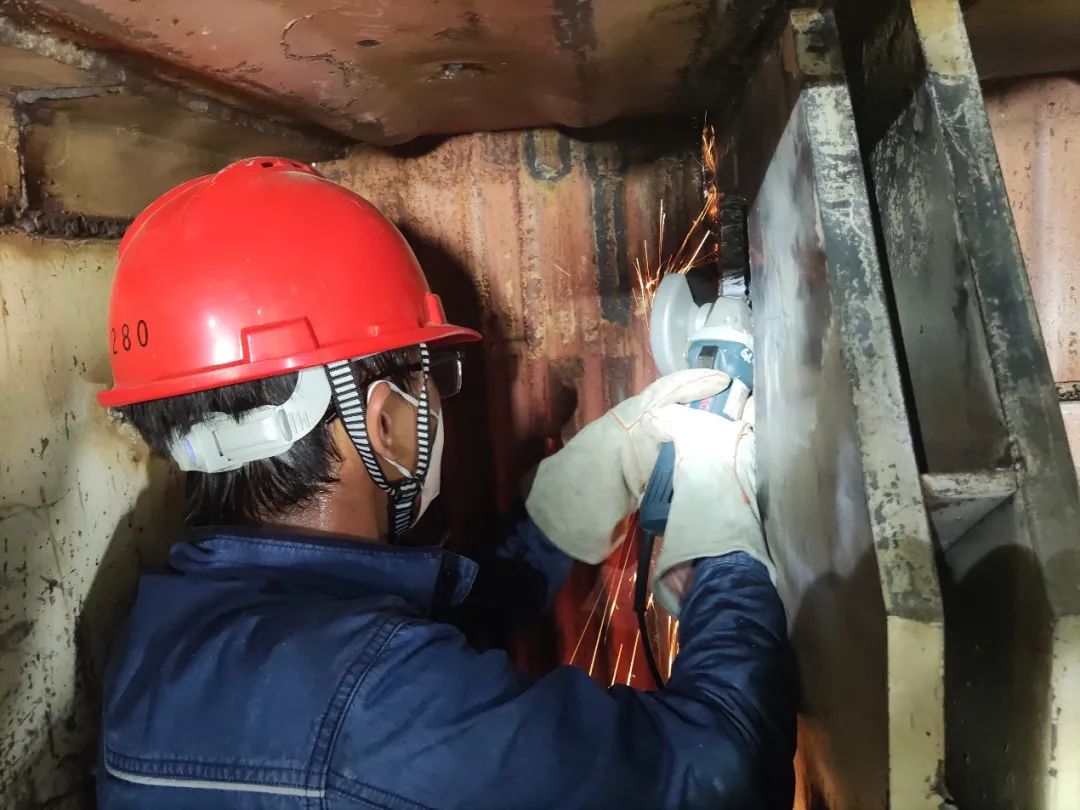 迎峰度夏期間,陜投集團趙石畔煤電檢修人員采取各種措施保證設備健康穩(wěn)定運行,加強對主、輔機設備的運行調整、檢修維護,對重點防汛地段、部位進行專項檢查。特別是出現(xiàn)緊急情況下的搶修工作,往往是輪番上陣,人歇工作不停。圖中,點檢郭生磊在鍋爐房消除設備膨脹受限缺陷,他手持角磨機一干就是半個多小時,面對噪音、高溫、火星飛濺等因素他堅持作業(yè)。當缺陷消除時,他的衣服早已濕透,但臉上卻露出了笑容。(李磊)