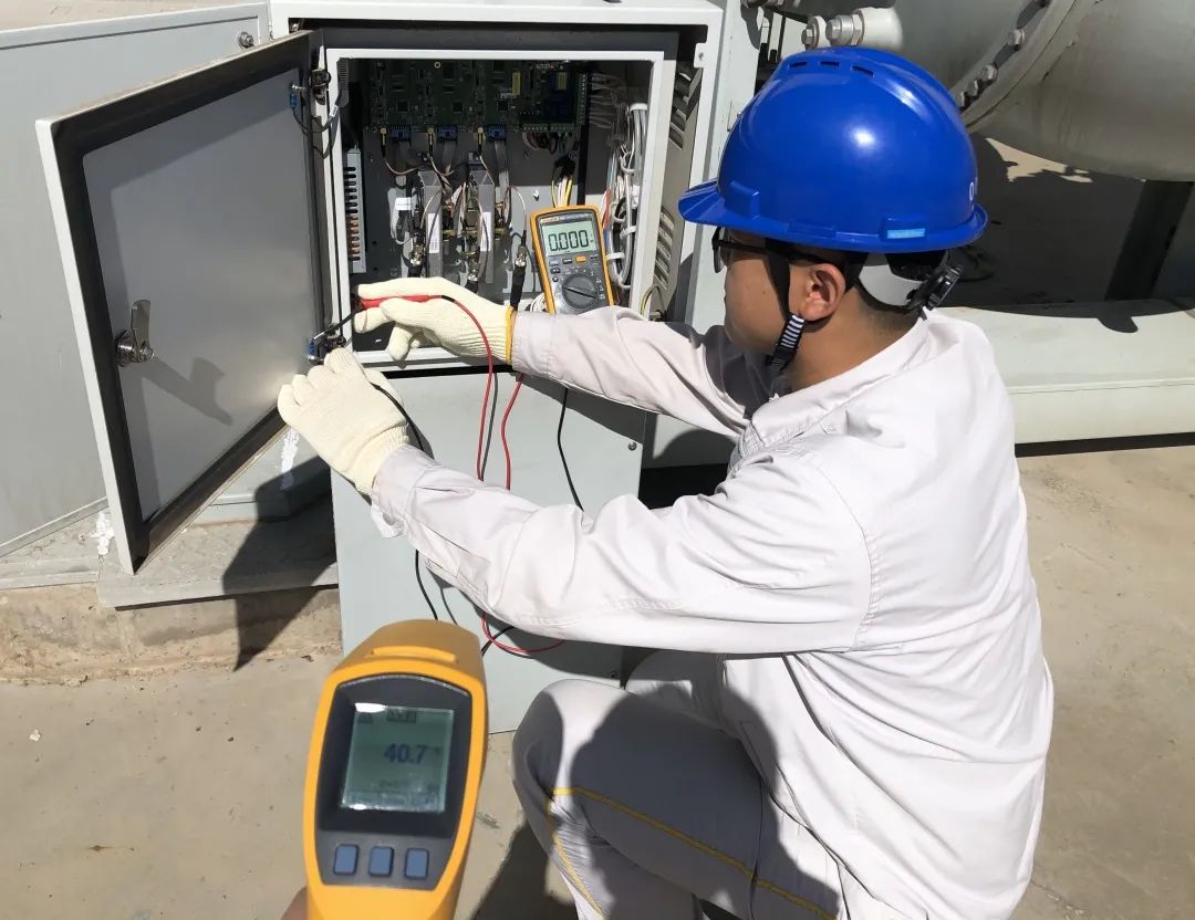 你的每一次低頭檢查,你的每一次仰頭觀察,都是這個夏天最美的風景。迎峰度夏,陜投集團趙石畔煤電設備部電氣自動化中心人員在檢查室外端子箱、設備工作環(huán)境、設備工作狀態(tài)、溫度是否合適、是否受潮情況、防風防雨措施是否到位等。(陶鳳娟)