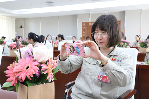 一件件融合了女職工們豐富想象力的美麗插花作品展現(xiàn)在了大家的面前,女職工們幸福的笑容與花朵相互交融。最后,女職工紛紛與自己的花籃合影留念,記錄下這幸福美好的時(shí)刻。