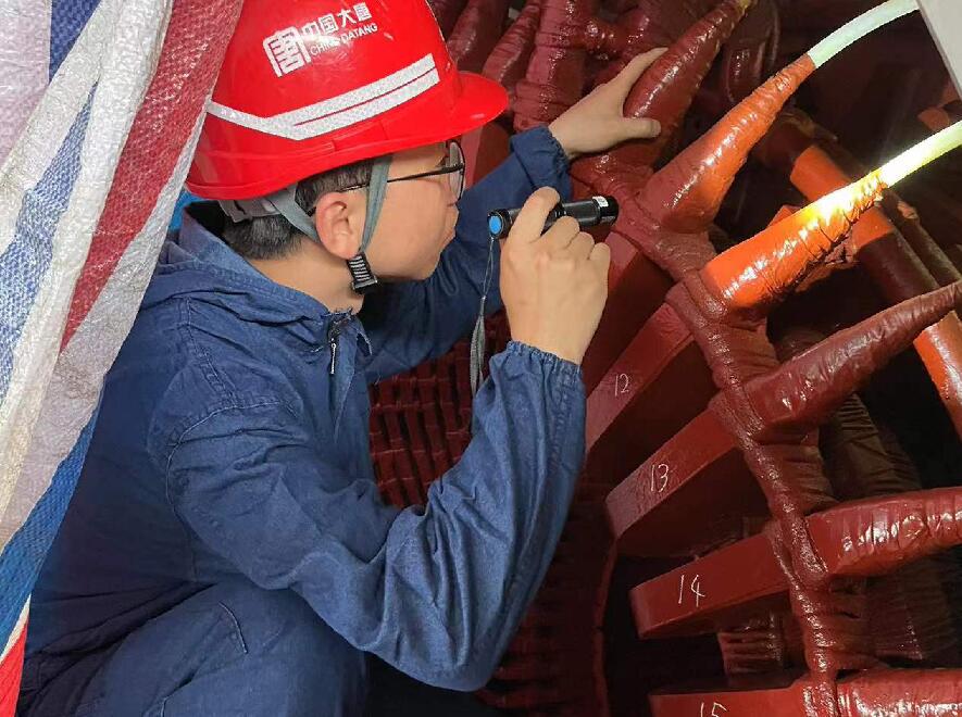 “主要是要多向師傅們學(xué)習(xí),想在前、干在前、沖在前。”談到自己參與A修的收獲丁健充滿干勁地說。畫面中,身著藍(lán)色連體服,緊貼在發(fā)電機(jī)線圈旁,對(duì)引水管檢查進(jìn)行詳細(xì)檢查的,正是2020屆入職職工丁健,在本次A修中,他承擔(dān)起了發(fā)電機(jī)套管出線B相套管更換項(xiàng)目任務(wù)。除了積極和廠家技術(shù)人員溝通,確保套管更換順利完成,多次參與爐和爐后電氣設(shè)備檢修,丁健格外珍惜來之不易的學(xué)習(xí)機(jī)會(huì):“平日的檢修工作無法見到電機(jī)解體后的模樣,現(xiàn)在電機(jī)解體大修,電機(jī)轉(zhuǎn)子抽出,原本在圖紙上抽象的內(nèi)部構(gòu)造生動(dòng)地展現(xiàn)在面前,震撼之余讓我對(duì)設(shè)備運(yùn)作方式和原理有了更好的理解。”