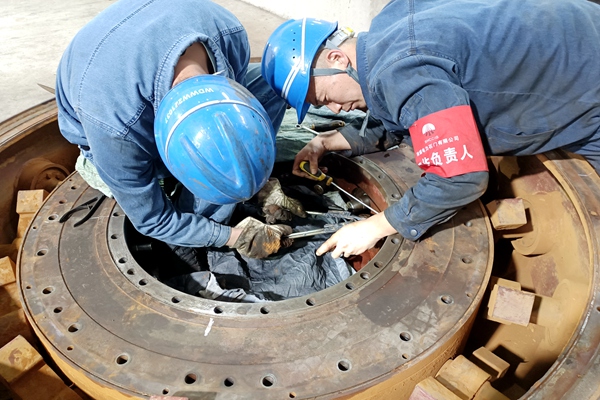 人員少,工期緊,任務重,這些猶如大山壓頂,行路堪難,尤其中期防磨防爆,班組還抽出了絕大部分主力,讓境況更是雪上加霜,但是這絲毫沒有將他擊垮,帶著寥寥幾人,繼續(xù)檢修任務??梢詺缥?,但是絕對不會打敗我,就算只剩“一兵一卒”,也誓要披荊斬棘戰(zhàn)至終章。作為班長,不僅是干活,還需要協(xié)調(diào),四處奔走查看情況......電話聲不斷,信息不止是常態(tài):“龍哥,這邊緊銅套需要再安排一個人”“汪班長,明天能進行1號空壓機保養(yǎng)不”“龍哥,這邊空預器吊電機,安排人來協(xié)助下”......似乎等待他停下腳步休息的一天永遠不會到來,即便如此分身乏術,也需迎難而上、砥礪前行。最終圓滿完成一號爐B級檢修與二號爐C級檢修任務:包括一號爐的送、引風機解體檢修、一次風機、除塵器、空預器檢修,二號爐汽水閥門檢修、汽包、撈渣機檢修……一個又一個任務的完成是他這條無畏路上最好的勛章與證明。憶來時,風雨險阻,都已是“回首向來蕭瑟處,歸去,也無風雨也無晴”。
