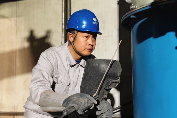 機(jī)械轟鳴,焊花四濺!他采取“短頻快”的方法,不斷調(diào)整焊接角度、電流和送絲速度,同時以“實戰(zhàn)”方式向徒弟講解預(yù)熱溫度、層間溫度以及焊接后的熱處理工藝,分析每一個焊接難點。
