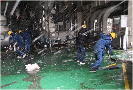 “請(qǐng)巡檢人員立即加強(qiáng)對(duì)現(xiàn)場(chǎng)重點(diǎn)區(qū)域的檢查與隱患排查工作,并做好個(gè)人防護(hù)措施”。剛一接班,電廠(chǎng)運(yùn)行部集控二值班組就迎來(lái)了巨大的考驗(yàn)。從2月15日凌晨開(kāi)始,雪下得越來(lái)越大,確認(rèn)完值內(nèi)的相關(guān)交待后,周軍立刻趕往現(xiàn)場(chǎng)仔細(xì)查看。