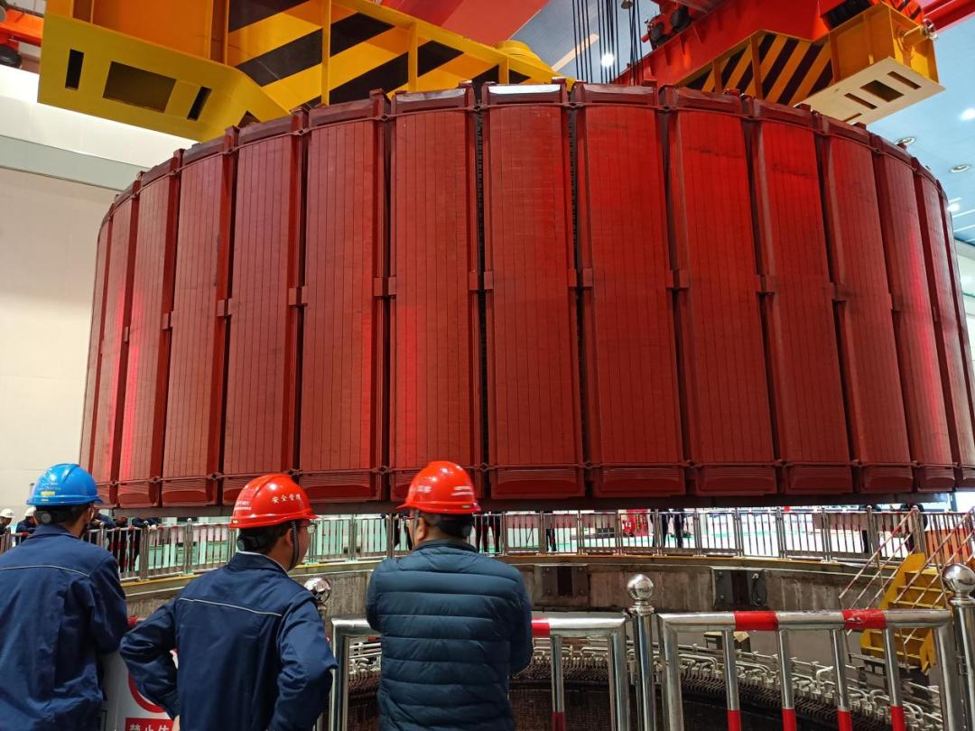 對(duì)于水輪發(fā)電機(jī)組來說,發(fā)電機(jī)轉(zhuǎn)子相當(dāng)于它的心臟,是整個(gè)水輪發(fā)電機(jī)組最核心的部件。#3發(fā)電機(jī)轉(zhuǎn)子直徑約13米,高約3.8米,重達(dá)1300余噸。吊裝作業(yè)的精度要求高,難度大,需要多專業(yè)精益化的相互配合。