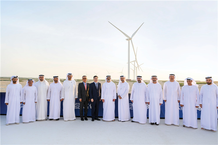 圖為阿聯(lián)酋風(fēng)電示范項(xiàng)目在阿布扎比薩爾巴尼亞斯島上的風(fēng)電場(chǎng)。中國(guó)電建供圖