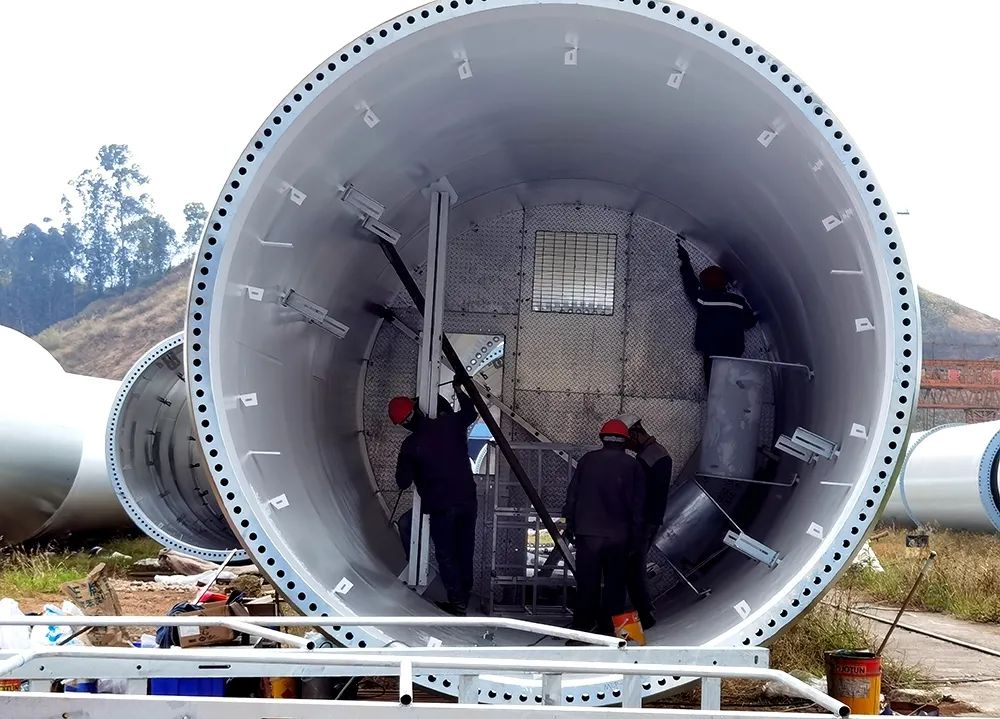 在云南藍天重工有限公司,工人們正在進行風力發(fā)電機塔筒內附件安裝。“我們今年新增了一條生產線,并于7月正式投產,可滿足單段100噸塔筒生產要求。今年,除了華寧,我們還接到了曲靖、文山等地的訂單。”該公司技術副總經理周鵬翔說,“現(xiàn)在全國風電產業(yè)趨勢向好,帶來了良好的市場前景,也帶來了更大的市場競爭。接下來,我們將充分發(fā)揮公司生產規(guī)模大、輻射面積廣的優(yōu)勢,不斷提升產品競爭力,逐步擴大生產規(guī)模。”
