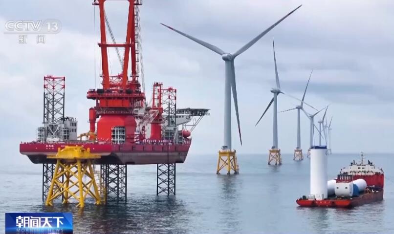 三峽集團(tuán)風(fēng)電安裝平臺(tái)“白鶴灘”號(hào)船長(zhǎng) 李剛:這種支腿船有四個(gè)樁腿,這個(gè)樁腿會(huì)深入泥底,到最后會(huì)把整個(gè)平臺(tái)抬起來,不受風(fēng)浪的影響,所以在吊裝的時(shí)候就更加平穩(wěn),更加有利于現(xiàn)場(chǎng)作業(yè)。