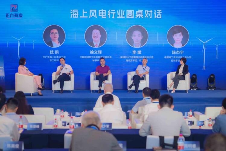 主旨演講后,由正力海發(fā)公司總裁高玲總主持,中廣核工程公司海上風(fēng)電公司總工程師魏鵬、國能源研究會氫能專業(yè)委員會秘書長徐文輝、中保利長大工程有限公司港航分公司黨總支書記、總工程師李斌、中國海工系統(tǒng)設(shè)備與事業(yè)部控制系統(tǒng)專家陳杰宇4位嘉賓的圓桌對話,圍繞中國海風(fēng)拓展國際市場的機(jī)遇和挑戰(zhàn)、海上風(fēng)電制氫技術(shù)發(fā)展及未來展望、深水風(fēng)電支腿船如何助力浮式風(fēng)機(jī)建設(shè)、海工裝備國產(chǎn)化的思考四個方面進(jìn)行深入探討,四位嘉賓專業(yè)見解和經(jīng)驗,展現(xiàn)了海風(fēng)市場、海上風(fēng)電、海工建設(shè)、海工裝備在未來的發(fā)展中具有廣闊的前景和未來,海洋能源、海洋工程大有可為。