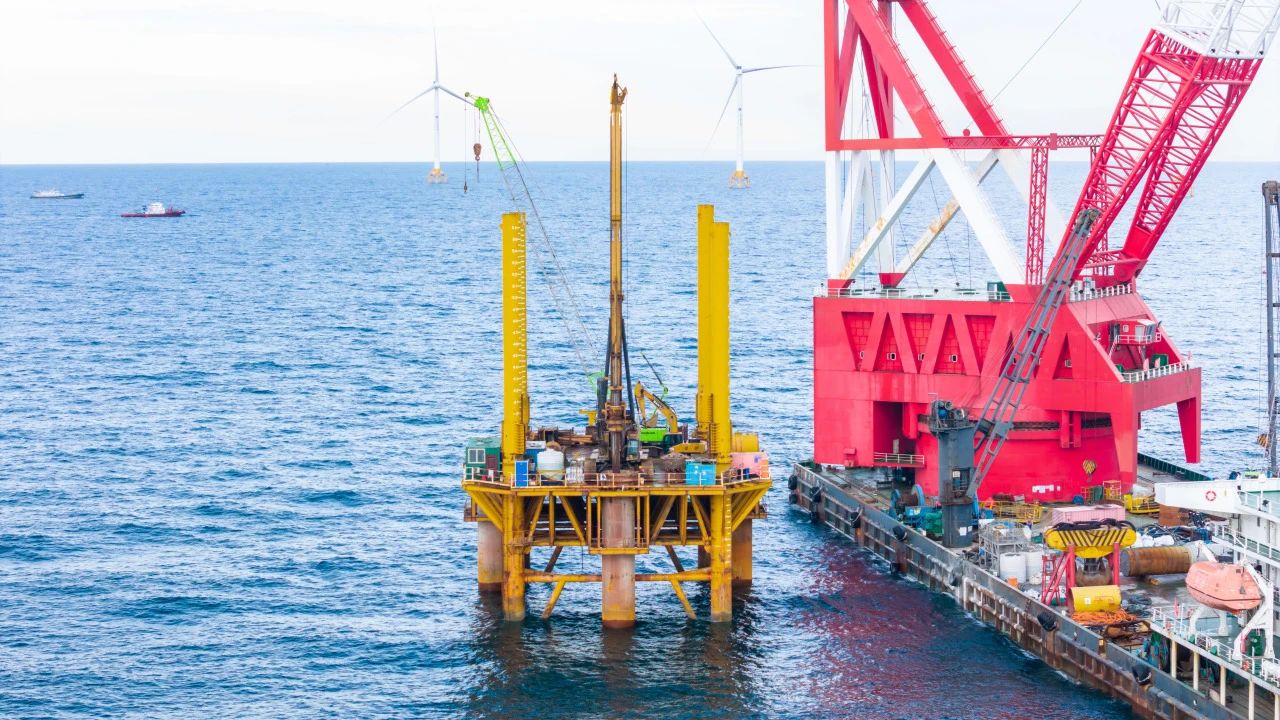 與陸上風(fēng)電不同,海上風(fēng)電需要結(jié)構(gòu)復(fù)雜的基礎(chǔ)來(lái)連接海床。項(xiàng)目所在的北部灣海域地質(zhì)構(gòu)造為典型的巖基海床,巖石硬度高,需全部采用嵌巖風(fēng)機(jī)基礎(chǔ),是國(guó)內(nèi)建設(shè)難度最大的海上風(fēng)電項(xiàng)目之一。