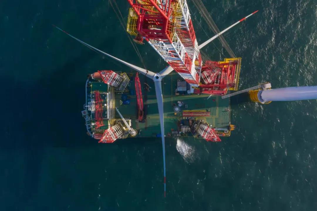 11月23日,伴隨著最后一支葉輪與機(jī)艙在百余米高空實(shí)現(xiàn)精準(zhǔn)對接,中廣核南鵬島海上風(fēng)電項(xiàng)目整場機(jī)組全部完成吊裝,至此,國內(nèi)首個(gè)大單體容量海上風(fēng)電項(xiàng)目全面進(jìn)入調(diào)試并網(wǎng)階段。該項(xiàng)目總裝機(jī)容量40萬千瓦,采用73臺明陽智能MySE5.5MW半直驅(qū)機(jī)組。