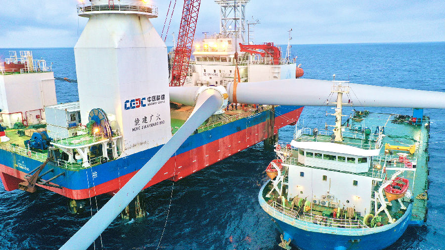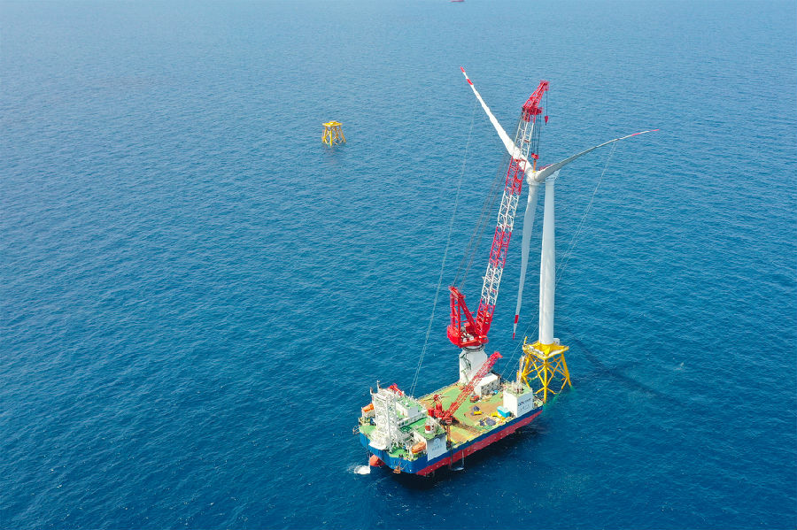 5月6日,由中國能建廣東院勘察設(shè)計、廣東火電參建的國內(nèi)首個近海深水區(qū)海上風(fēng)電場——華電陽江青洲三500兆瓦海上風(fēng)電場完成首臺風(fēng)機吊裝。