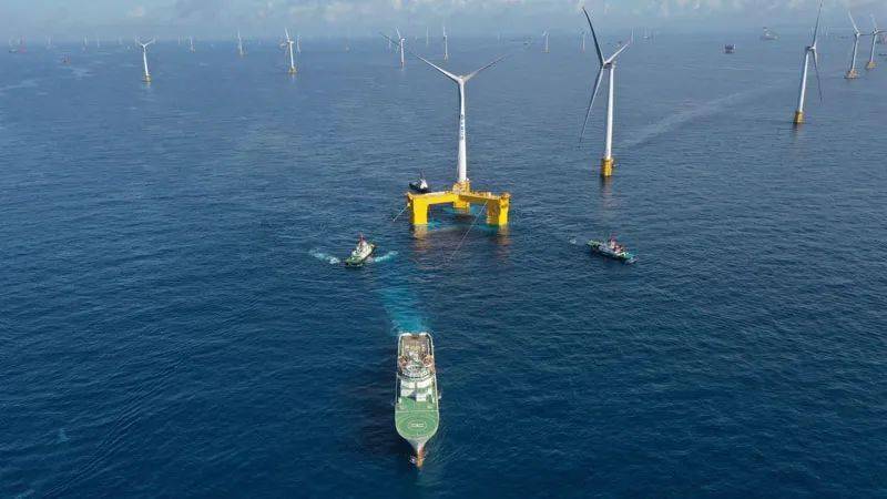這一刻,人與海的交響,宣告我國漂浮式海上風(fēng)電史有了濃墨重彩的第一筆,擁有完全自主知識產(chǎn)權(quán)的中國漂浮式風(fēng)電機組及基礎(chǔ)平臺——“三峽引領(lǐng)號”邁出了深遠海風(fēng)能資源獲取的探索步伐。