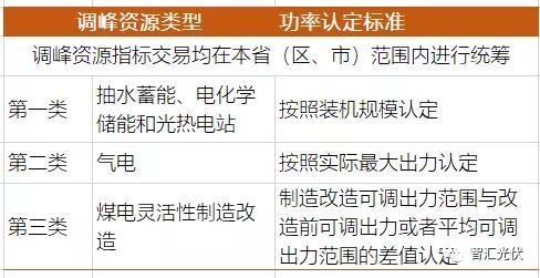 根據(jù)“1138號(hào)文”,被認(rèn)可的調(diào)峰資源可以分為三類,每類的調(diào)峰能力(功率)的認(rèn)定方式如下表所示。