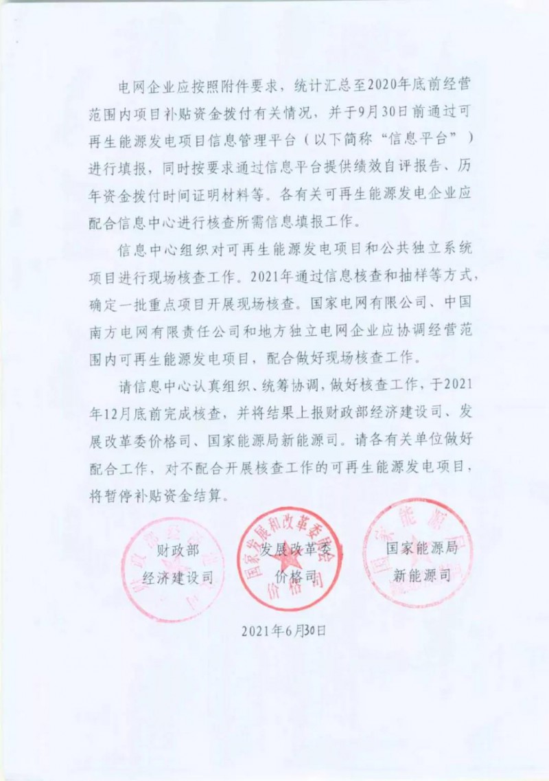 近日,財(cái)政部經(jīng)濟(jì)建設(shè)司、國家發(fā)改委價(jià)格司、國家能源局新能源司聯(lián)合印發(fā)《關(guān)于開展可再生能源電價(jià)附加補(bǔ)助資金核查工作的通知》,委托國家可再生能源信息管理中心對可再生能源電價(jià)附加補(bǔ)助資金使用情況、涉及項(xiàng)目進(jìn)行核查。