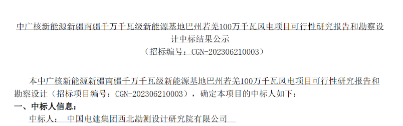 公告顯示,中國電建集團(tuán)西北勘測(cè)設(shè)計(jì)研究院有限公司成功中標(biāo)該項(xiàng)目,中標(biāo)價(jià)格為14,500,000.00元。