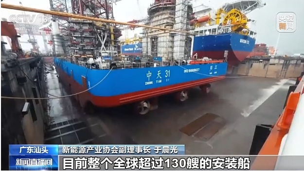 新能源產(chǎn)業(yè)協(xié)會副理事長 于晨光:海上風電安裝船作為整個海上風電安裝效率提升就是最重要的一個船機。目前整個全球超過130艘的安裝船,中國造超過100艘,也就占了這80%以上的這個份額。目前高性能的安裝船需求訂單已經(jīng)排到2028年,所以其實中國的這個安裝船的市場可以走向歐美。