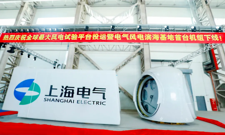 日前,全球最大風電試驗平臺——上海電氣風電全功率平臺在上海電氣風電濱?;赝哆\。當天,上海電氣風電濱?;厥着_機組同時下線。