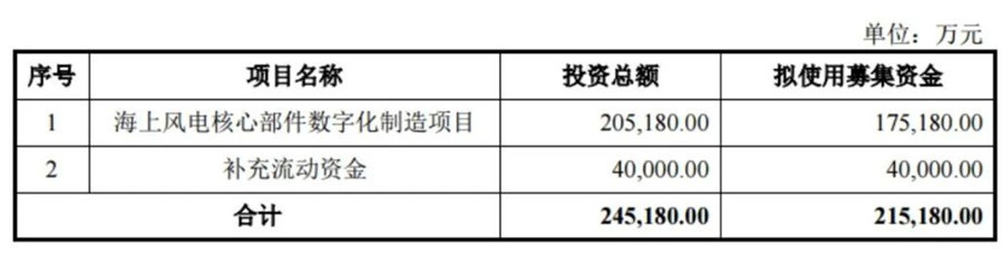 12月12日,金雷科技股份公司(簡(jiǎn)稱“金雷股份”)發(fā)布《向特定對(duì)象發(fā)行股票募集說明書》(修訂稿),擬募集資金21.52億元,用于海上風(fēng)電核心部件數(shù)字化制造項(xiàng)目(17.52億元)和補(bǔ)充流動(dòng)資金(4億元)。