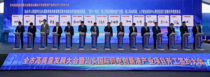 大會云集了金風科技、中車永濟、德力佳、中材科技、北京鑒衡、華潤電力、京能集團等國內(nèi)海上風電裝備制造龍頭企業(yè)及能源企業(yè),為海上風電母港、“四個一體化”海上風電裝備制造產(chǎn)業(yè)園、廣東省臨海試驗基地項目等一批海上風電產(chǎn)業(yè)關鍵環(huán)節(jié)重點項目舉辦了集中簽約開工儀式,正式拉開了汕頭國際風電創(chuàng)新港建設熱潮!