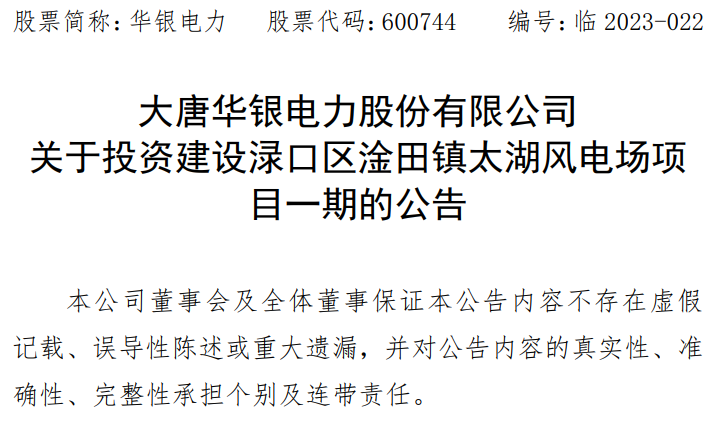 公司與中車株洲電力機車研究所有限公司、株洲市資源投資集團有限公司合資成立的大唐華銀株洲清潔能源有限公司(以下簡稱“株洲清潔能源公司”)擬建設淥口區(qū)淦田鎮(zhèn)太湖風電場項目一期(以下簡稱“項目”),項目擬裝機容量為 50.05MW,預計總投資為 35,348 萬元。