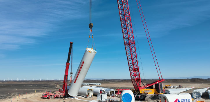 10月3日,由水電十一局牽頭總包承建的電建集團(tuán)投資建設(shè)的陸上最大風(fēng)電項(xiàng)目——新疆巴里坤60萬千瓦風(fēng)儲項(xiàng)目首臺風(fēng)機(jī)塔筒成功開始吊裝。