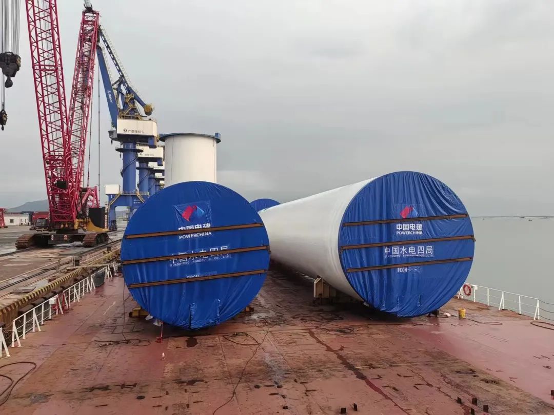 該項(xiàng)目裝機(jī)容量高達(dá)289MW,計(jì)劃安裝34臺8.5MW風(fēng)機(jī)。陽江公司承擔(dān)其中14臺塔筒的加工制造任務(wù),工期緊任務(wù)重。這些塔筒不僅體積龐大,僅單套重量(不含電氣柜)達(dá)到了約510噸,且結(jié)構(gòu)復(fù)雜,共4段,總長度111米,最大直徑7.5米,最小直徑5.3米。