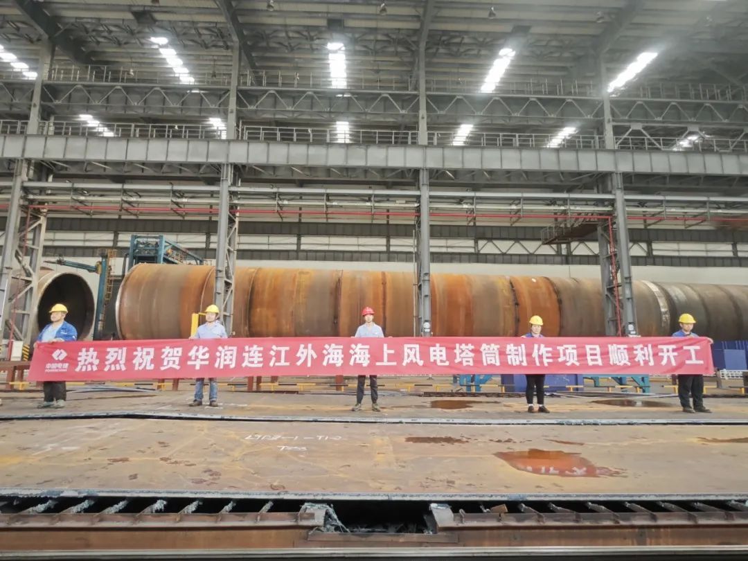 項目場址位于位于連江東側(cè)海域,規(guī)劃容量裝機700兆瓦,本工程共計39臺東方電氣18兆瓦機型海上風(fēng)機,為我國單機容量最大的海上風(fēng)電項目。其中單樁基礎(chǔ)機型7套,最大直徑10米,單重約996.38噸;導(dǎo)管架基礎(chǔ)機型32套,最大直徑8.9米,單重約818.77噸。福清公司承制該項目39套所有塔筒供貨任務(wù)。