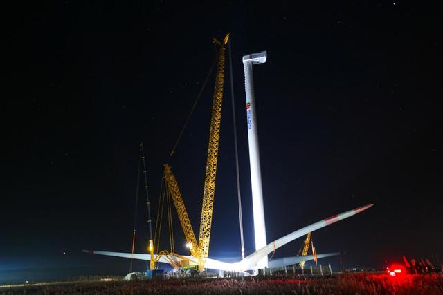 吉林大安風(fēng)電項(xiàng)目位于吉林省白城市大安市,建設(shè)規(guī)模200兆瓦,主要施工內(nèi)容包括40臺風(fēng)電機(jī)組基礎(chǔ)及安裝工程、40臺箱式變壓器、8條集電線路及附屬道路,合計(jì)200兆瓦總?cè)萘?。本次安裝的風(fēng)機(jī)設(shè)計(jì)輪轂中心高度110米,葉輪直徑193米,最大掃風(fēng)面積29240平方米,相當(dāng)于4個足球場大小。超強(qiáng)的掃風(fēng)面積帶來的是加倍的陸上捕風(fēng)能力,單臺機(jī)組年發(fā)電量可滿足8000戶家庭全年用電量。