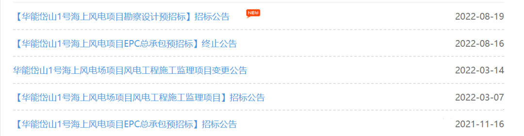8月16日,華能集團(tuán)發(fā)布公告稱,因超出投標(biāo)有效期,決定終止華能岱山1號海上風(fēng)電項(xiàng)目EPC總承包預(yù)招標(biāo)項(xiàng)目。